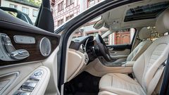 Khoang cabin của GLC 2020 tạo nét đặc trưng bởi sự rộng rãi và sang trọng nhờ phong cách bố trí và sắp xếp thông minh của Mercedes cùng những chất liệu đắt tiền như da và gỗ. Khu vực táp lô không có sự thay đổi lớn về thiết kế khi vẫn được tạo thành từ những đường thẳng với tỷ lệ vàng cho cái nhìn ấn tượng.