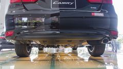 Đuôi xe Camy tiếp tục duy trì thiết kế quen thuộc với cụm đèn hậu cỡ lớn được phân tách thành hai phần trên dưới riêng biệt, đi cùng một thanh nẹp chrome trải dài xuyên suốt chiều rộng phía sau hết sức nổi bật. Kết hợp cùng dãy đèn LED báo phanh phụ đặt phía sau lớp kính là hai chi tiết đèn phản quang bố trí thấp ở cản sau sẽ giúp các phương tiện trên đường giữ được khoảng cách an toàn cần thiết. Ẩn bên dưới gầm xe còn là một bộ cánh khuếch tán gió “nho nhỏ” để cải thiện tính khí động học của Camry khi di chuyển ở tốc độ cao.