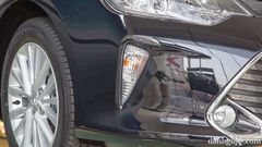 Tiếp đến đèn báo rẽ đã tách khỏi cụm đèn pha để chuyển “ra riêng” đến vị trí trước đây là hốc hút gió, tuy trông không quá hấp dẫn nhưng lại rất dễ dàng cho việc nhận ra đây là các phiên bản mới của Camry trên đường phố. Ngoài ra Toyota còn trang bị tiêu chuẩn đèn LED chạy ban ngày, đèn sương mù halogen cùng tính năng tự động bật tắt đèn pha.