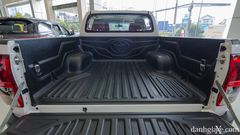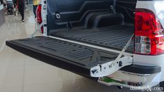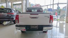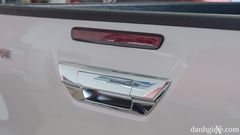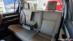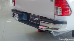 Hilux quan sát từ phía sau trông vuông vức và gọn gàng “đúng chuẩn” bán tải. Nắp chắn thùng không xuất hiện các đường dập điệu đà như một vài đối thủ, điểm nhấn đến từ tay nắm cửa mạ chrome bóng bẩy và dãy đèn LED báo phanh phụ ngay phía trên. Hai cụm đèn hậu ôm sát hai bên thân xe kết hợp cùng cản sau kiêm bậc lên xuống mang đến vẻ cân xứng, vững vàng cho Hilux.