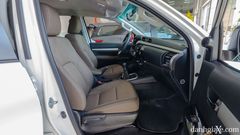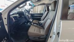 Phiên bản cao cấp nhất - Hilux 2.8G 4x4 AT có được hai hàng ghế bọc da cao cấp và vị trí ghế lái chỉnh điện 8 hướng. Trong khi đó hai chiếc Hilux số sàn chỉ bố trí năm vị trí ngồi phủ nỉ tối màu như hình ảnh trong bài viết, hai ghế trước chỉnh cơ và đệm ngồi ở ghế sau có thể gập 60:40 linh hoạt để chứa thêm hàng hóa cồng kềnh khi cần thiết.