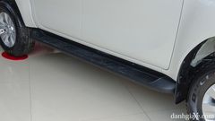 Bên thân xe, không có sự khác biệt giữa các phiên bản khi Toyota mang đến các trang bị tương đồng: mâm xe hợp kim đúc 6 chấu đơn kích thước 17-inch; gương chiếu hậu mạ chrome chỉnh/gập điện có tích hợp đèn báo rẽ; tay nắm cửa mạ chrome, bậc lên xuống dành cho hành khách. Tất cả không chỉ giúp Hilux tiện dụng hơn với hành khách mà còn lịch lãm không kém gì một chiếc SUV đô thị.