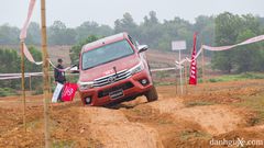 Khung gầm và hệ thống treo cũng là điểm cộng đáng giá ở chiếc bán tải của Toyota. Không chỉ uyển chuyển khi vào cua ở tốc độ cao, Hilux còn nhạy bén và vững vàng trước địa hình xấu, từ đổ dốc nghiêng, đi xe lòng chảo cho đến lăn bánh qua các đoạn mấp mô đầy cam go. Kết hợp cùng đó là nút gài cầu điện, chỉ cần xoay nhẹ thì từ dẫn động một cầu thì Hilux sẽ ngay lận tức chuyển sang di chuyển bằng bốn bánh, nhanh hoặc chậm với khóa vi sai cầu sau.