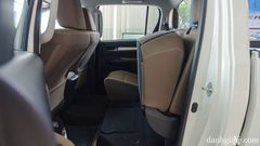 Nhìn chung ghế ngồi của Hilux 2017 cho cảm giác thoải mái và dễ chịu, tựa lưng và đệm ngồi êm ái, nâng đỡ cơ thể tốt. Hàng ghế sau đủ rộng rãi cho ba người lớn, có thêm bệ tì tay trung tâm kiêm hộc để ly nhưng độ nghiêng lưng ghế chỉ ở mức khá, nếu đi đường dài sẽ không mấy thoải mái nếu so với hai đối thủ là Triton và Navara.