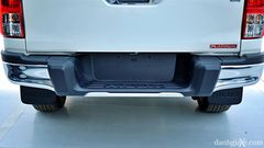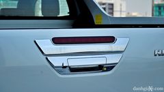 Đuôi xe Toyota Hilux 2020 vẫn giữ thiết kế xe bán tải truyền thống với cụm đèn hậu halogen 2 tầng đứng phía sau. Điểm khác biệt phía đuôi xe các phiên bản Hilux 2020 là cản sau. Phiên bản 2.4 có cản sau sơn đen, trong khi phiên bản 2.8 G cao cấp có cản sau mạ chrome nổi bật. Trên cản sau cũng thiết kế bậc lên xuống tiện dụng, đồng thời tích hợp đèn phanh thứ ba ngày chắn thùng hàng, không bị khuất nếu người dùng cần ngắn phụ kiện nắp thùng cao.