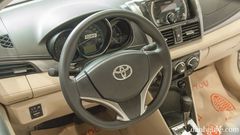 Vô-lăng 3 chấu bọc urethan thay vì da như trên các phiên bản G, điều này khiến người lái cảm giác hơi đau tay khi cầm lái trong thời gian dài và không được trang bị phím chức năng. Nếu so sánh với các đối thủ có tay lái bọc da như Mazda 2 hay Honda City thì Vios tỏ ra thua kém hẳn.