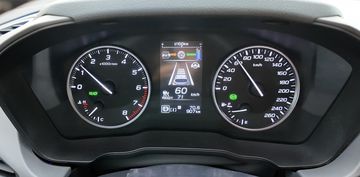Subaru Crosstrek 2025 vẫn trang bị đồng hồ lái analog truyền thống, kết hợp với màn hình đa thông tin cỡ nhỏ cơ bản