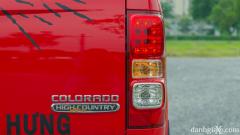 Đầu tiên là cụm đèn hậu LED ba tầng vuông vức ôm sát hai bên thân xe, tay nắm cửa ốp nhựa và mạ chrome, nắp chắn thùng được dập nổi, cản sau kiêm bậc lên xuống ốp chrome, tên hãng xe/dòng xe và cả logo High Country đặc trưng. Một điểm cộng khác đến từ Chevrolet là họ đã khéo léo thiết kế ống xả và bánh dự phòng khá kín đáo, giúp Colorado giữ được tổng thể tươm tất và gọn gàng ở nhiều góc nhìn khác nhau.