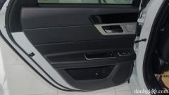 Bên trong cửa xe, hãng xe nước Anh sử dụng một loạt các vật liệu cao cấp, từ mảng ốp gỗ được sơn tối màu, phủ cacbon đắt tiền, lẫy cửa mạ chrome cho đến bọc da và khâu chỉ nổi hoàn toàn các bệ tì tay, ngoài ra bốn cửa kính còn được trang bị chỉnh điện một chạm. Các trang bị này không chỉ giúp cabin sang trọng hơn mà còn khiến hành khách luôn cảm thấy thoải mái và tiện nghi cùng XF.