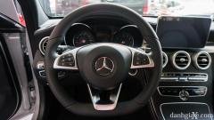 Điểm nhấn tương tác trực tiếp với người lái chính là vô-lăng 3 chấu được bọc da cao cấp và được vác ngang ở phần dưới như các mẫu xe thể thao thực thụ. Một lần nữa, các mảng ốp kim loại mờ ảo lại được sử dụng, giúp tô điểm thêm tính thể thao trên C300 AMG.