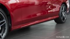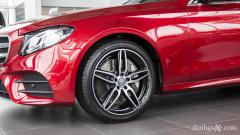 Điểm ấn tượng nhất khi nhìn từ ngang thân xe chính là bộ mâm xe đúc từ hợp kim nhôm, có thiết kế 5 chấu kép đặc trưng của AMG cùng kích thước ấn tượng. Bộ mâm này được kết hợp với lốp xe hiệu Goodyear Eagle F1 có kích thước 245/40R19. Trong khi dó, phiên bản E200 lăn bánh trên la-zăng hợp kim 17-inch có thiết kế nhã nhặn và lịch lãm hơn.