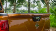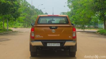 Trực diện từ phía sau, Navara EL tiếp tục tuân theo bản thiết kế chung của gia đình NP300 với sự vuông vức cùng các đường nét gãy gọn. Chiếm nhiều “diện tích” hơn cả ở đuôi xe là phần nắp chắn thùng có gân dập nổi hình chữ V đặc trưng của Nissan, logo đặt bên dưới tay nắm mạ chrome cùng nhựa cứng, tên xe và tên phiên bản dập nổi. Một điểm sáng không thể không nhắc đến hai cụm đèn hậu ba tầng ôm sát bên thùng hàng kết hợp cùng đuôi lướt gió thể thao tạo nên cá tính không thể nhầm lẫn cho Nissan so với các đối thủ.