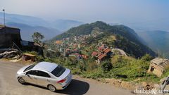 Tiếp tục lăn bánh theo đúng lịch trình, chúng tôi đến thành phố Vĩnh Yên khi mặt trời đang bắt đầu xuống núi. Thị trấn Tam Đảo dần hiện ra trước mắt, những dãy nhà, biệt thự tọa lạc trên ba đỉnh núi ẩn hiện trong sương: Bàn Thạch, Thiên Nhị và Phù Nghĩa. Cảm giác hồ hởi, háo hức cứ thế ùa đến theo vòng quay của vô-lăng, chúng tôi nhanh chóng tăng tốc và bắt đầu lên đỉnh.
