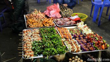 Tối đến, chúng tôi đỗ xe rồi đi bộ vào khu vực chợ đêm, tìm một lán nhỏ để thưởng thức những đặc sản nơi đây sau một ngày dài thấm mệt. Vài quả trứng nướng, đôi thanh cơm lam, đĩa rau su su cùng với món gà đồi bọc giấy bạc nướng chín thơm nức lần lượt đi vào bản đồ ẩm thực của riêng tôi. Ghé Quán Gió - “quán cà phê trên mây”, nhâm nhi tách nâu nóng ngắm nhìn thành phố Vĩnh Yên lung linh trong đêm, cảm giác thư thái, sung sướng đến lạ.