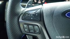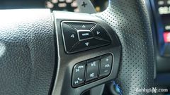 Tiếp đến là cụm vô-lăng. Tuy vẫn sử dụng thiết kế 3 chấu hình hộp nhưng nay được “gọt đẽo” các khoảng lồi cho cảm giác cầm chắc tay hơn. Hướng 12h trên vô-lăng thêu chỉ đỏ tương tự các mẫu xe đua, giúp người lái dễ dàng căn chỉnh. Đặc biệt, ngoài các phím chức năng được tích hợp như điều chỉnh âm thanh, đàm thoại rảnh tay, ga tự động cruise control…thì Ranger Raptor còn có thêm hai lẫy chuyển số +/- phía sau.