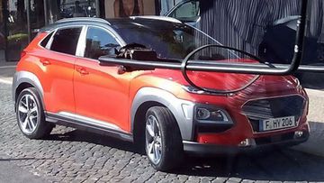 Theo đó, đây là lần đầu tiên Hyundai kona xuất hiện trên phố mà hoàn toàn không được ngụy trang, cho thấy phần đầu xe có thiết kế tương tự như mẫu Cactus Citroen C4 với đèn LED định vị ban ngày nằm cao hơn đèn pha chính, đèn sương mù được gắn ngay dưới lưới tản nhiệt, lưới tản nhiệt giống với Hyundai i30 hoàn toàn mới.