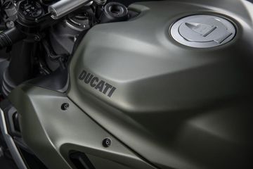 Màu sơn Storm Green của Ducati Streetfighter V2 không hẳn là màu xanh mà chỉ là ánh xanh đi kèm nước sơn ánh kim nhám khá đẹp mắt. Đội ngũ thiết kế Ducati cho biết nước sơn ánh kim sẽ tạo nên sự tương phản trong khi lớp phủ nhám sẽ rất ăn nhập với màu sắc của các chi tiết cơ khí.