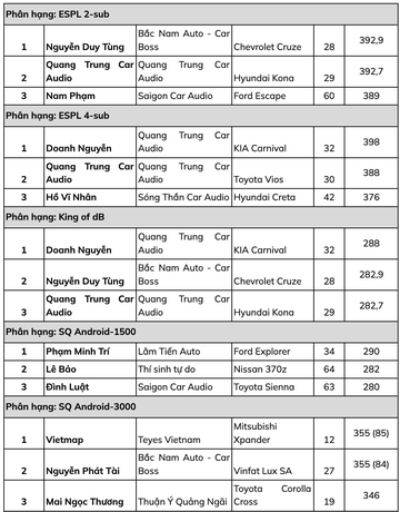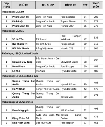 Sau 2 ngày tranh tài, sự kiện thi đấu âm thanh xe hơi chuyên nghiệp EMMA Vietnam 2023 đã tìm ra những thí sinh chiến thắng tại 21 phân khúc thi đấu.