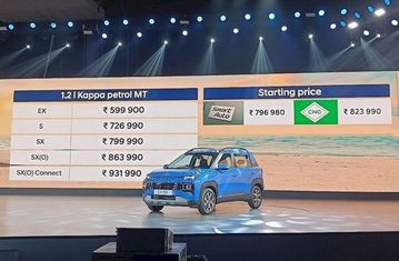 Hiện tại Ấn Độ Hyundai Exter được bán với 5 phiên bản gồm EX, S, SX, SX (O), SX (O) Connect và CNG. Mức giá bán của mẫu xe SUV nhỏ nhất này dao động từ 5.99 lakh - 9.32 lakh rupee (tương đương 172 - 267 triệu đồng).