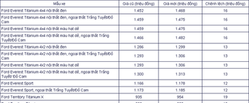 Như vậy, Ford Everest sẽ được điều chỉnh giá bán niêm yết tăng thêm 16 triệu đồng cho các phiên bản Titanium dẫn động 2 cầu và tăng thêm 13 triệu đồng với các phiên bản Titanium 4x2.