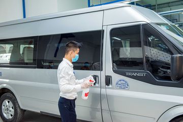 Sau khi nhận xe từ Khách hàng, các kỹ thuật viên của Ford sẽ tiến hành vệ sinh khử khuẩn xe trước khi thực hiện quy trình dịch vụ, đặc biệt là các điểm thường xuyên tiếp xúc như tay nắm cửa, vô lăng và các nút bấm. Quy trình khử khuẩn tương tự cũng sẽ được thực hiện trước khi giao trả xe cho Khách hàng.
