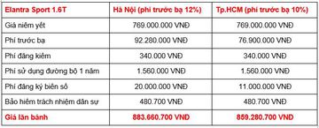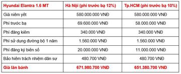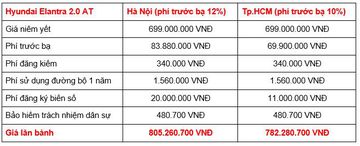 Tại các khu vực khác, giá lăn bánh của Hyundai Elantra cũng sẽ có sự thay đổi tuy theo mức phí trước bạ và phí ra biển số. Để ước tính, bạn có thể lấy tổng chi phí tại TP.HCM trừ đi 9 triệu đồng tiền biển số.