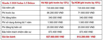 Sau khi cộng dồn các khoản thuế phí bắt buộc, chi phí lăn bánh cao nhất của Mazda3 2020 tại Việt Nam là khoảng 1.074 tỉ đồng.