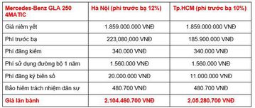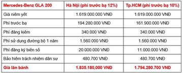 Để sở hữu bản thấp nhất là GLA 200, người mua sẽ phải bỏ ra tống chi phí khoảng 1.8 tỉ đồng tại Hà Nội, và khoảng 1.7 tỉ đồng tại TP.HCM.