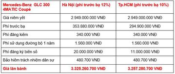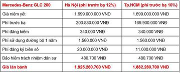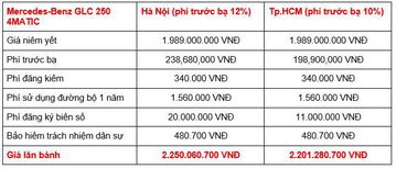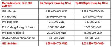 Mercedes-Benz GLC hiện đang được bán ra tại Việt Nam với 4 phiên bản, chi phí lăn bánh dao động trong khoảng từ 1.882 tỉ đồng - 3.225 tỉ đồng, tùy từng phiên bản.