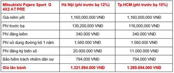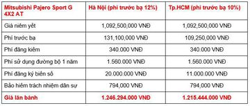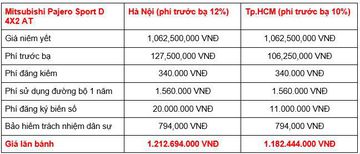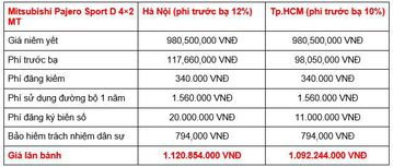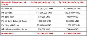Đối thủ của Toyota Fortuner và Ford Everest hiện đang được phân phối tại thị trường Việt Nam với 6 phiên bản, giá niêm yết từ 980.500.000 - 1.182.500.000 VNĐ, sau khi cộng thêm các khoản chi phí theo luật định, giá lăn bánh của Mitsubishi Pajero Sport là như sau.