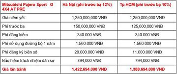 Tại các khu vực và tỉnh thành khác, chi phí lăn bánh của Mitsubishi Pajero Sport cũng sẽ có sự thay đổi tùy theo lệ phí trước bạ và phí ra biển số: