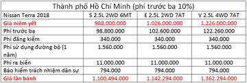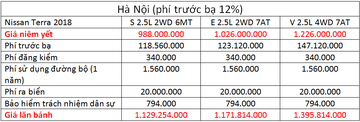 Theo đó, tổng chi phí để bạn có thể lăn bánh hợp pháp Nissan Terra 2018 sẽ khoảng: