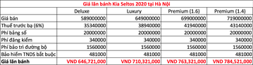 Mức giá lăn bánh sau khi được hưởng ưu đãi thuế trước bạ 50% của Kia Seltos tại Hà Nội từ 645 triệu đồng cho đến cao nhất là 784 triệu đồng.
