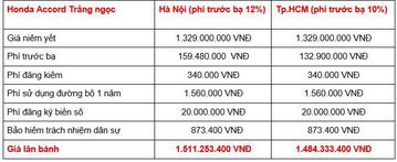Giá lăn bánh Honda Accord 2019 tại Việt Nam