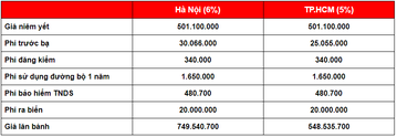 Dưới đây là chi phí lăn bánh chi tiết của 4 phiên bản nâng cấp tại Việt Nam (ĐVT: VNĐ):