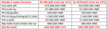 danhgiaXe sẽ giúp bạn tạm tính tổng chi phí lăn bánh Mazda 2 2019 tại Hà Nội và tp.Hồ Chí Minh như sau: