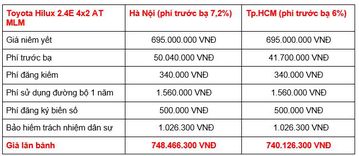 Không phải là dòng bán tải đình đám nhất nhưng tại thị trường Việt Nam, Toyota Hilux vẫn luôn giữ được doanh số khá ổn định qua từng tháng. Hiện tại mẫu xe này mang lại cho khách hàng Việt 3 sự lựa chọn về phiên bản với giá lăn bánh dao động trong khoảng từ 740 - 945 triệu đồng.