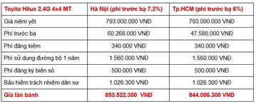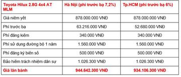 Giá lăn bánh Toyota Hilux 2019 tại Việt Nam