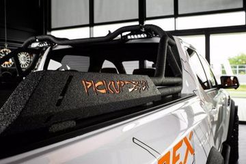 Các vòm bánh xe có phần mở rộng bằng chất liệu nhựa, trong khi các bậc bên, tấm chắn bùn và StyleBar trên thùng sau đến từ hãng Pickup Design.