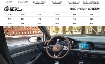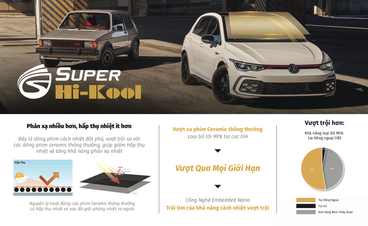 Lần đầu tiên, các mẫu xe Volkswagen Golf được trang bị phim cách nhiệt Hi-Kool Super Beyond Ceramic. Phim cách nhiệt Hi-Kool Super Beyond Ceramic là giải pháp tối ưu cho những ai tìm kiếm sự cân bằng hoàn hảo giữa khả năng bảo vệ và tính thẩm mỹ cho chiếc xe của mình.
