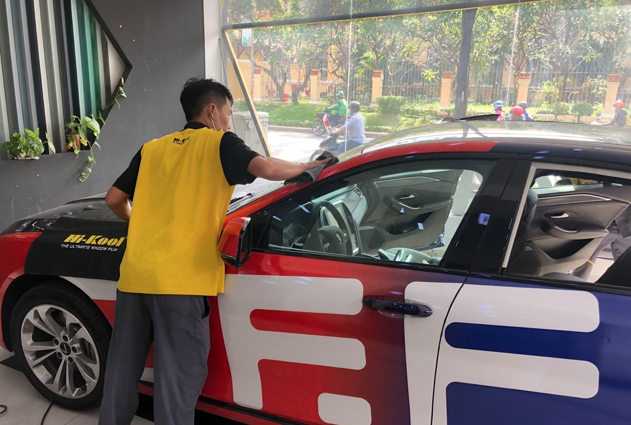 Thi công Phim cách nhiệt Hi-Kool trên ô tô tại đại lý Hi-Kool Việt Nam.