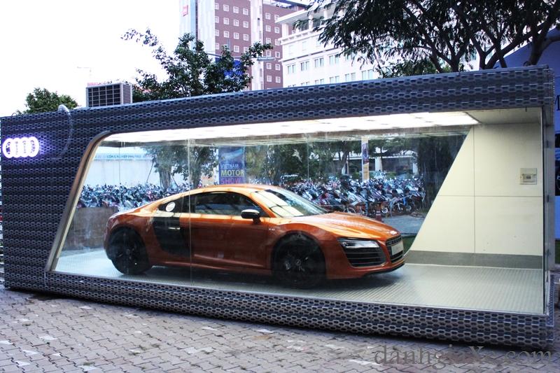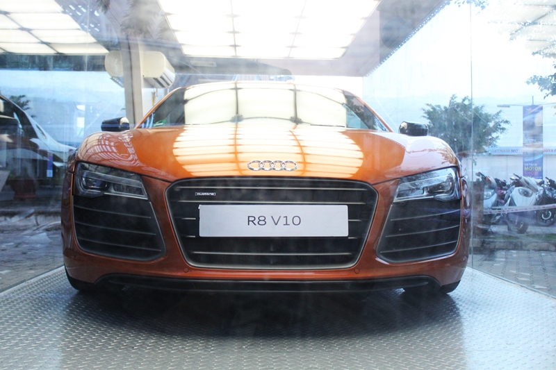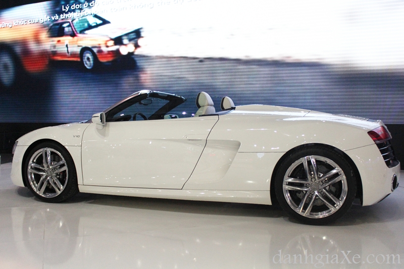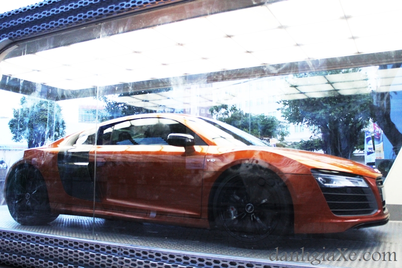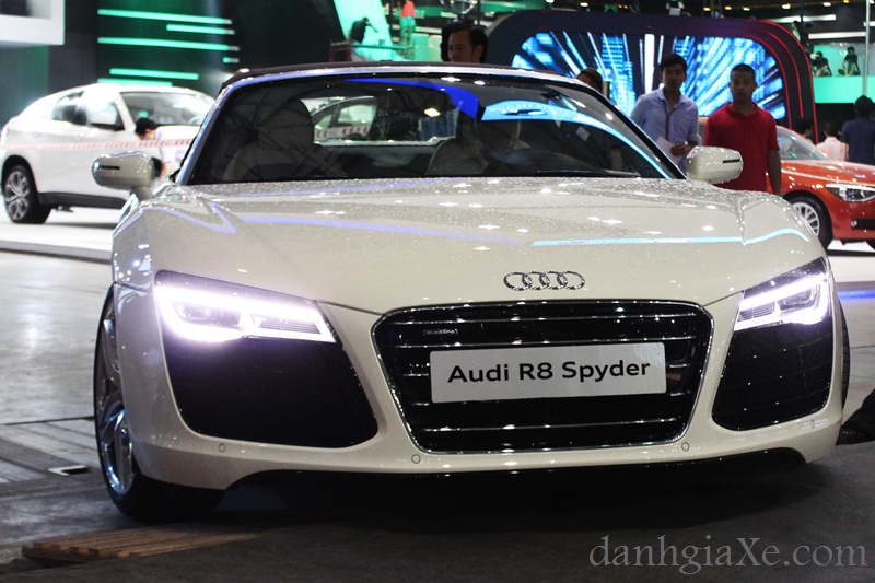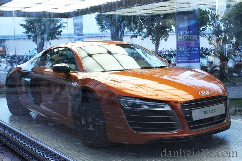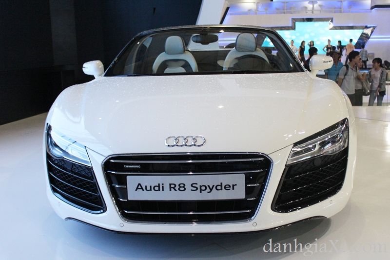 Cặp đôi siêu xe Audi R8 V10 2014 sẽ là tâm điểm chú ý tại Vietnam Motor Show 2013. Điều đặc biệt là hãng xe Đức trưng bày 2 siêu xe này ở 2 vị trí khác nhau. Trong khi phiên bản R8 Spyder trắng tinh khôi được trưng bày ở trung tâm gian hàng Audi thì phiên bản R8 Plus màu cam nổi bật lại nằm trong lồng kính ngoài khu vực ra vào.