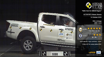 Bắt đầu với những mẫu xe pick-up Nissan Navara, xe được đánh giá 5 sao sau khi đi qua vòng thử thứ hai của buổi kiểm định, với trang bị 3 túi khi (2 túi khí phía trước, 1 túi khi đầu gối người lái). Qua bài thử bảo vệ với người lái ở độ tuổi trưởng thành (AOP), xe đạt 14,44 điểm trong tối đa 16 điểm, một bước tiến vượt bật khi chỉ đạt 12,34 điểm thu được trong hồi tháng ba.
