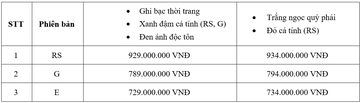 Giá bán lẻ đề xuất của từng phiên bản và màu xe Honda Civic 2020 được cập nhật như sau: