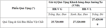 - Đối tượng khách hàng: Khách hàng mua xe Honda HR-V và hoàn tất thủ tục thanh toán 100% trong thời gian triển khai chương trình khuyến mại