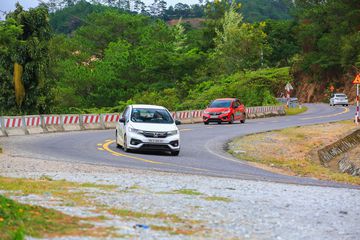 Từ Đà Lạt đi Phan Rang theo quốc lộ 27 đồng nghĩa phải vượt qua những con đèo đầy nguy hiểm trong tình trạng đổ dốc. Tuy nhiên, đây chính là một sân khấu hoàn hảo cho Honda Jazz và mang đến cảm giác lái đầy thú vị cho người điều khiển. Đầu tiên là với trọng tâm thấp và hệ thống treo được tinh chỉnh không quá mềm giúp cho Jazz cho khả năng ôm cua ở tốc độ cao lên đến 70 hay thậm chí 80 km/h vẫn đầy chắc chắn, cũng như hiện tượng chao đảo thân xe khá ít. Và nếu trong một tình huống nào đó mà bạn xử lí thiếu kinh nghiệm như đánh lái quá gắt thì các hệ thống an toàn của Jazz như cân bằng điện tử VSA hay phân phối lực phanh điện tử EBD sẽ can thiệp và giúp lấy lại khả năng kiểm soát chiếc xe.
