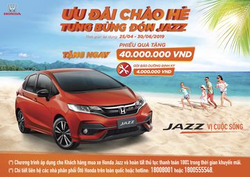 Với mong muốn nhiều hơn nữa khách hàng có cơ hội trải nghiệm mẫu xe Honda Jazz và tận hưởng những khoảnh khắc mùa hè tuyệt vời bên gia đình, bạn bè, từ ngày 25 tháng 4 đến ngày 30 tháng 6 năm 2019, Honda Việt Nam triển khai chương trình khuyến mại hấp dẫn “Ưu đãi chào hè, tưng bừng đón Jazz”.