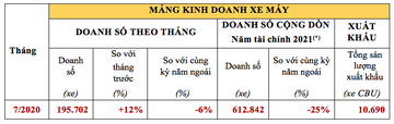 Công ty Honda Việt Nam (HVN) thông báo doanh số bán lẻ mảng kinh doanh xe máy & ô tô trong tháng 7/2020. Kết quả được tổng hợp bởi Cửa hàng Bán xe và Dịch vụ do Honda Ủy nhiệm / Nhà Phân phối ô tô Honda giao cho khách hàng và theo ước tính của HVN.