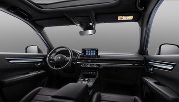 Không gian cabin rộng rãi, hiện đại, được trang bị nhiều công nghệ tiên tiến, thiết kế bảng điều khiển trung tâm lớn với các núm điều khiển làm từ vật liệu cao cấp, có bố cục gọn gàng, dễ sử dụng. Bảng đồng hồ trung tâm kích thước lớn 10.2 inch và màn hình hiển thị kính chắn gió HUD hiện đại (phiên bản e:HEV RS) cập nhật các thông tin quan trọng sẽ giúp người lái luôn tập trung nhìn đường, kịp thời xử lý các vấn đề phát sinh khi di chuyển. Khoang điều khiển thông thoáng với vị trí bố cục hợp lý, phía trước đặt được 2 điện thoại thông minh và hỗ trợ sạc điện thoại không dây.