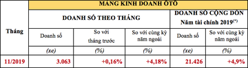 • CR-V với 833 xe bán ra, chiếm 27,2% tổng doanh số bán ôtô của HVN trong T11/2019.